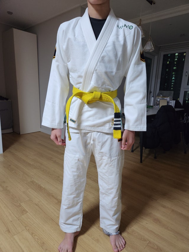 고1되는 아들 173에62키로인데 기존꺼보단 커야될거 같아서 A1L주문 했더니 소매랑 바지길이가 좀 길고 어깨도 좀 크긴 했어요 아들이 크게 입는거 시러하고 운동복은 더더욱 크게 입는거 아니라며 교환 원해서 A1사이즈로 교환 받았더니 지금 딱 좋아요 키가 더 크면 작아지겠지만요ㅠ아들이 기존 사이즈도 A1인데 이게 더 크데요 직접 팔이기며 바지길이 상의길이 재봣더니 좀더 길긴 했고 바지통은 좀 슬림한거 같아요 기존껀 상의가 엄청 무거웟는데 경량이라 그런지 확실히 가볍네요 A1L랑A1 사진 비교샷 올려요 노란벨트가 A1이고 흰색벨트는A1L 입니다