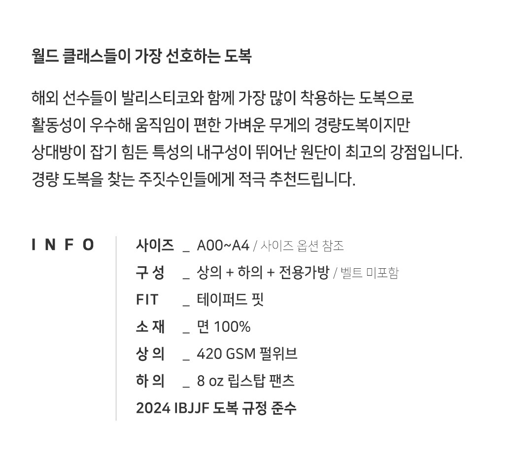 월드클래스 선수들이 시합에서 착용하는 경량 도복!